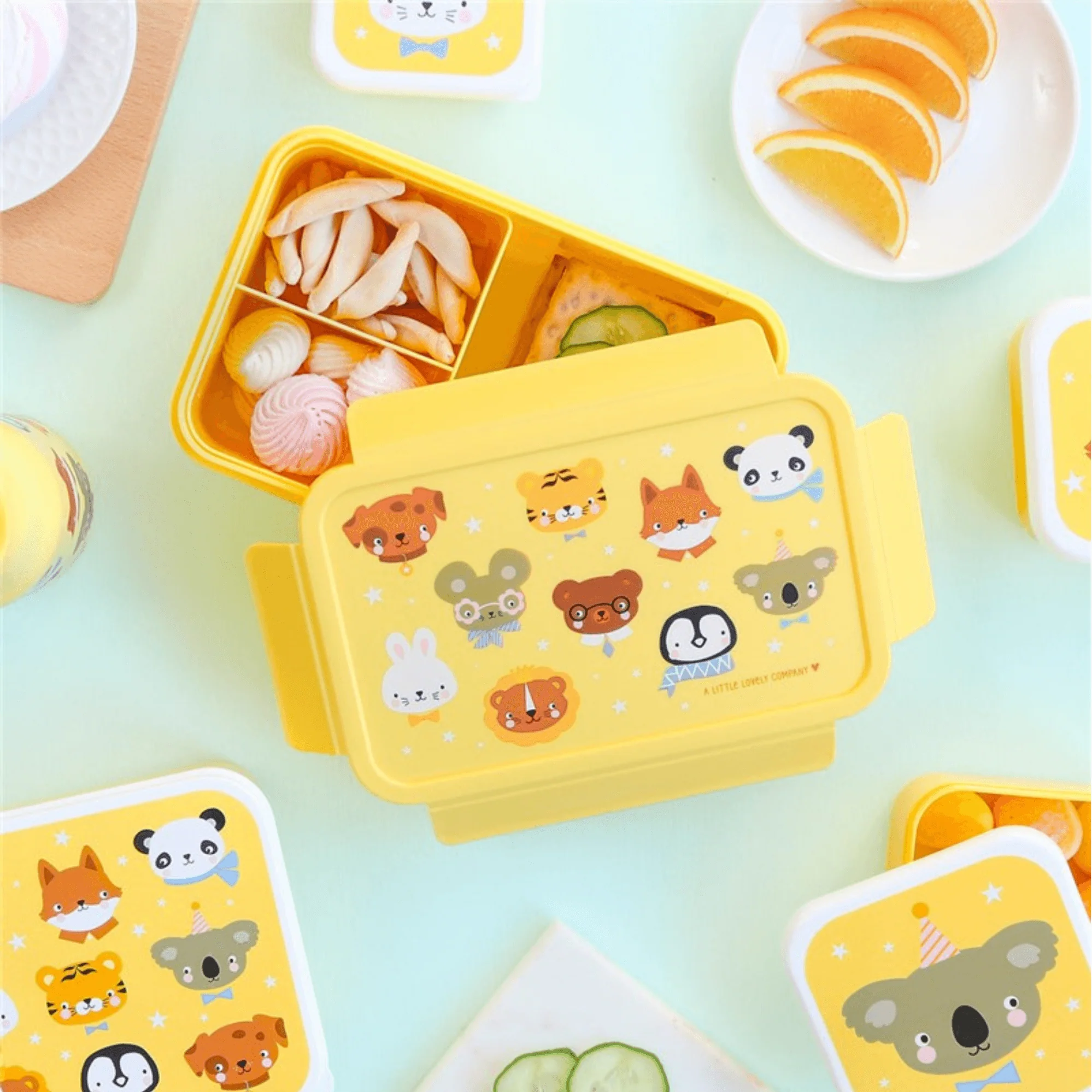 Esta caja de almuerzo bento con diseño de animales ofrece una solución práctica para mantener tus comidas frescas y organizadas. Su tapa hermética con cierre de clic asegura un sellado seguro, evitando derrames. La bandeja extraíble con dos compartimentos permite separar diferentes alimentos, facilitando un almuerzo equilibrado y variado, ideal para la escuela o para llevar.