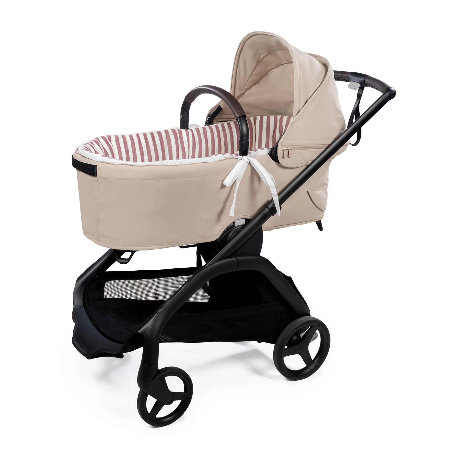 El cubre cuco con varillas y sábana bajera ajustable Cherry de Pasito a Pasito es el complemento perfecto para aportar suavidad y elegancia al capazo de tu bebé. Fabricado en algodón 100%, garantiza un tacto delicado y transpirable, ideal para la piel sensible del recién nacido. El cubre capazo con varillas se ajusta perfectamente al interior del capazo. Su diseño ajustable con lazos garantiza una perfecta adaptación al cuco proporcionando un acabado envolvente y seguro con un diseño encantador de rayas. La sábana bajera ajustable, confeccionada en muselina de 70% bambú y 30% algodón, ofrece una suavidad excepcional y transpirabilidad óptima, asegurando el confort del bebé en todo momento. Compatible con la mayoría de los capazos. Este conjunto es ideal para mantener a tu bebé cómodo y protegido, con el estilo y calidad que caracteriza a Pasito a Pasito. Todas nuestras fundas están fabricadas conforme a las más exigentes normativas europeas, con materiales de gran calidad, libres de colorantes azoicos, ftalatos y sustancias nocivas para la salud. Tela de fácil limpieza, se recomienda lavar a máquina a 30º. Los productos para bebé de Pasito a Pasito cuentan con un diseño muy diferente a todas las demás. Sus colecciones se caracterizan por el trabajo al detallada, pensadas siempre desde un punto de vista práctico. Utilizan materiales de primera calidad para remarcar la elegancia y la armonía en cada una de sus piezas. Nuestros modelos son exclusivos y de estilo inconfundible, pensados en las madres actuales que gozan de buen gusto y que aprecian los detalles tanto como nosotros. Especificaciones: Materiales: 100% algodón. Tamaño universal.