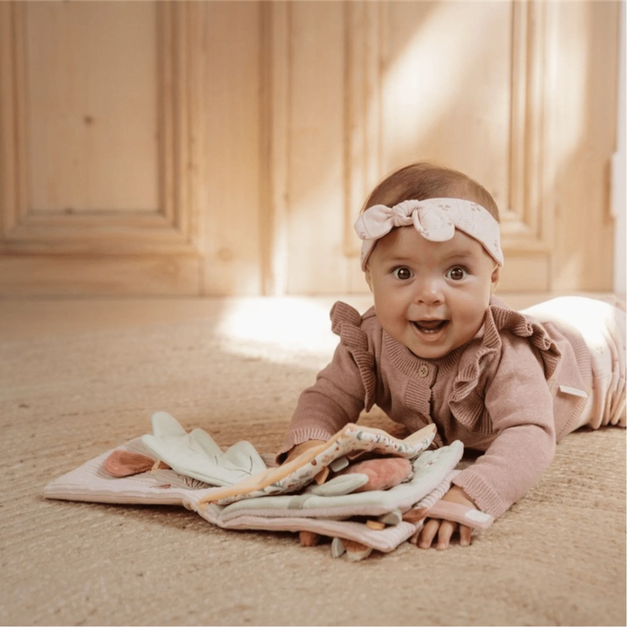 Nunca te aburrirás con este libro de actividades táctiles sobre el jardín de hadas. El simpático ciervo te invita a observar más de cerca el jardín mágico. Hay muchos materiales y actividades diferentes para explorar, como un espejo, un sonajero y juguetes crujientes. El suave librito también tiene diferentes etiquetas para tocar. No solo estimulará los sentidos, sino que también ayudará a desarrollar la coordinación mano-ojo.