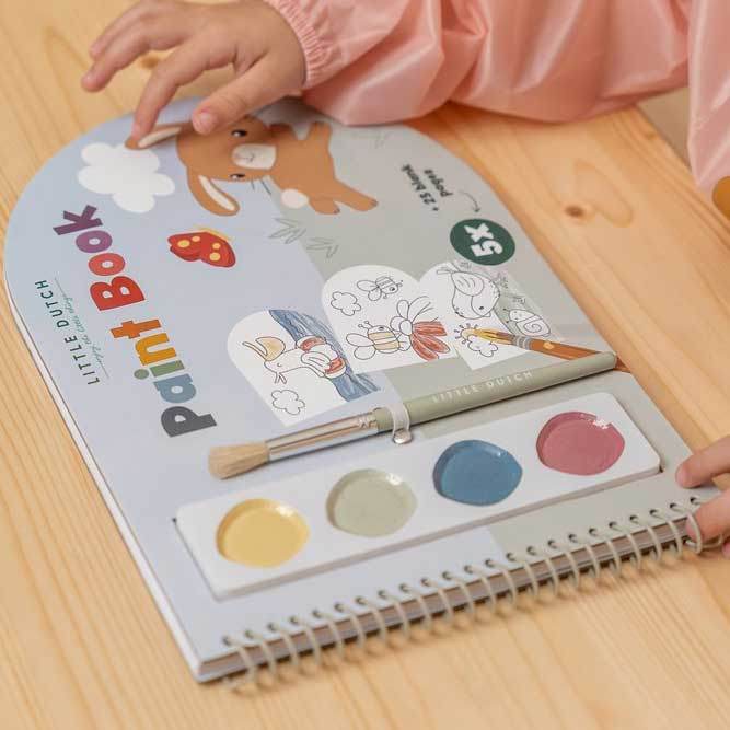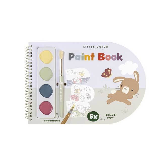 Libro de acuarelas para colorear de Little Dutch, viene con un pincel y acuarelas. Las 5 primeras páginas del libro contiene páginas con dibujos a colorear, las siguientes están en blanco para pintar tus propias creaciones.